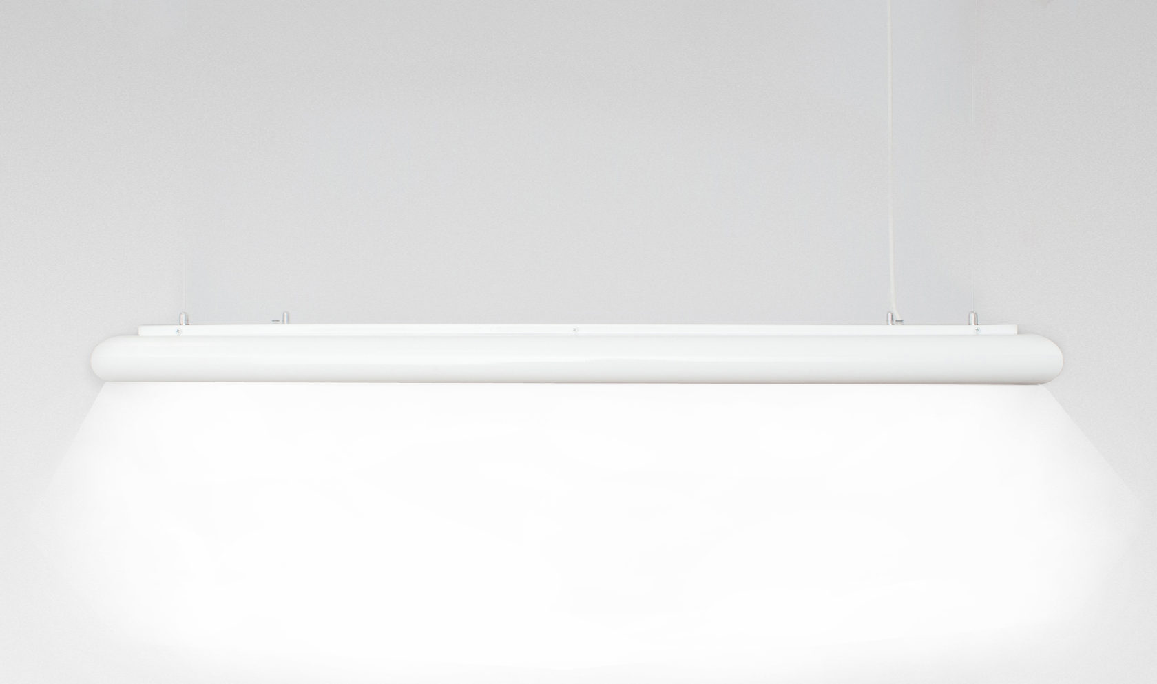 Стандартная высота подвеса светильника – 1,2 м от рабочей поверхности. Корпус светильника выполнен из стали, окрашенной белой порошковой краской, с полимерным покрытием и устойчив к обработке дезинфицирующими средствами.