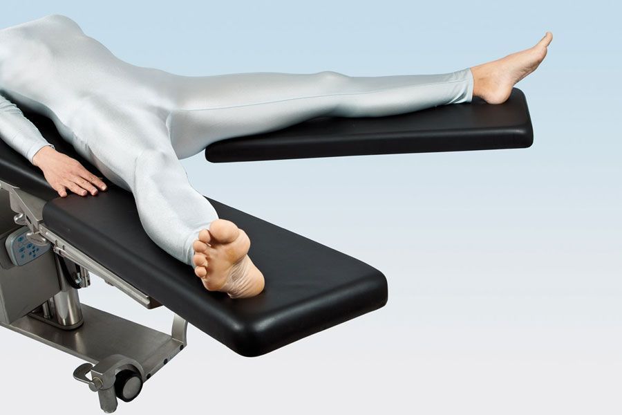 Удлиненные на 30 см опоры для ног используются при положении пациента с широко разведенными ногами, литотомическом положении, при гинекологических операциях или просто для очень крупных пациентов. Дополнительная длина также дает возможность смещения пациента вниз для проведения рентгена в области таза.
