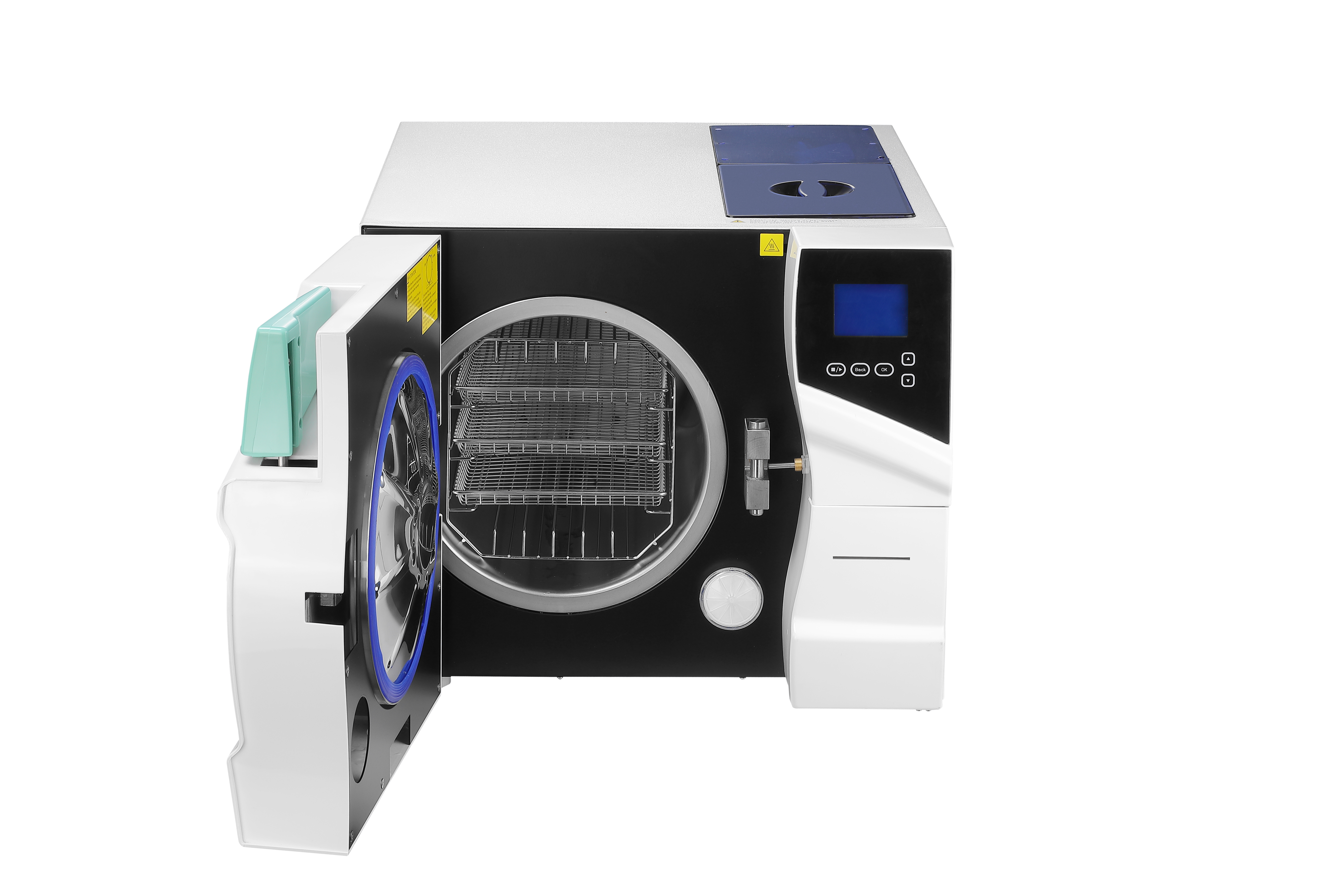 Дверца автоклава оснащена механическим замком с электрическим контролем и уплотнительным кольцом, которые прошли все испытания и выдерживают давление до 3 кг.