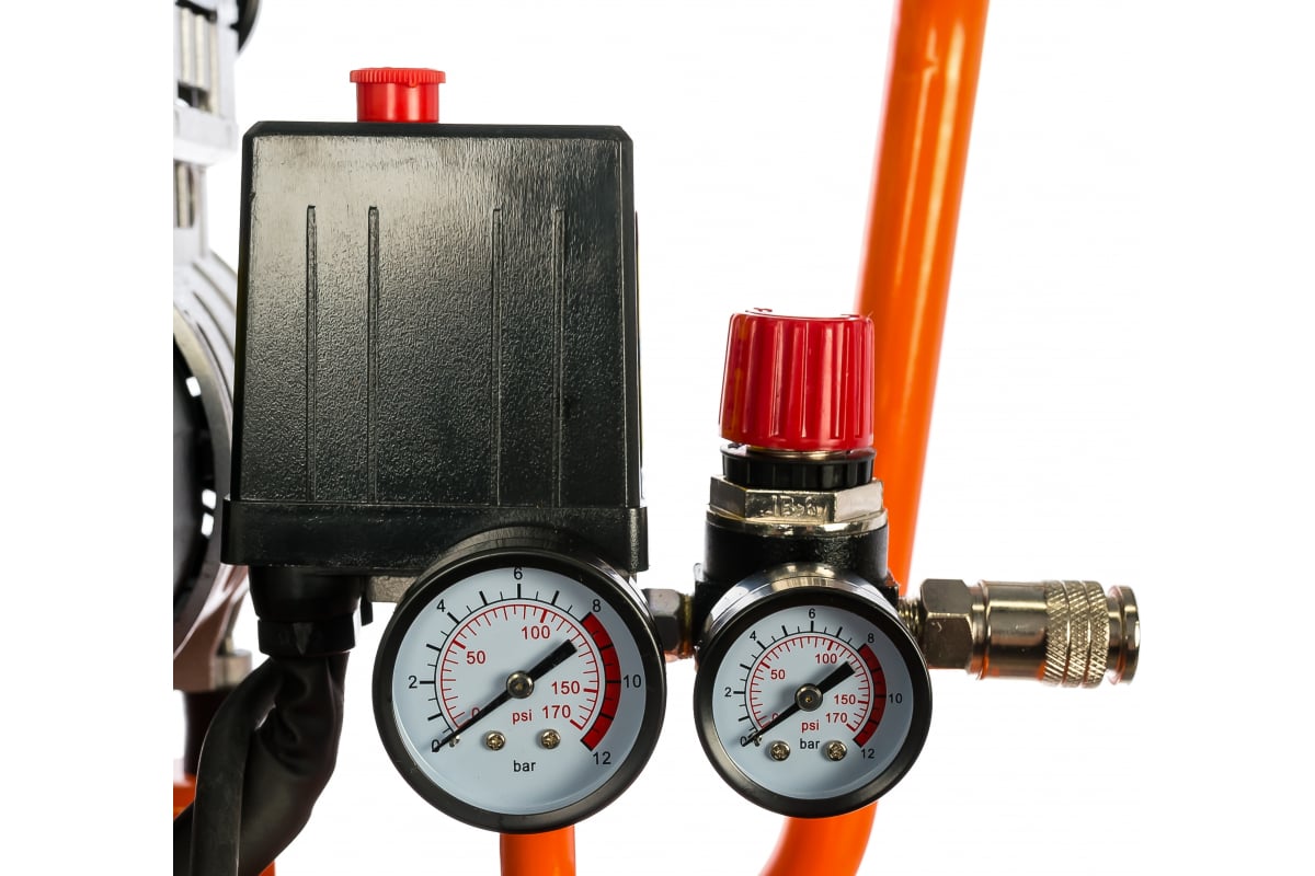 - Предохранительный клапан для ограничения максимального давления сжатого воздуха в ресивере и защиты его от разрушений и перегрузок;