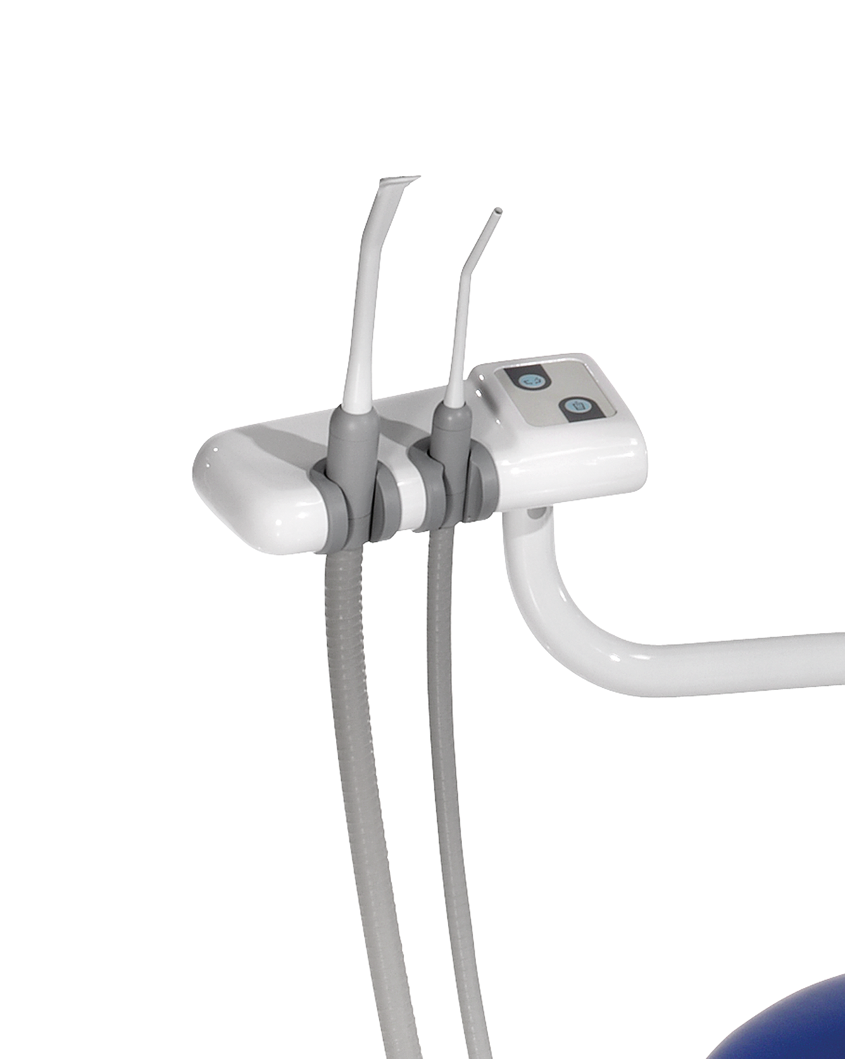 Модуль ассистента на 4 инструмента, закреплён на гидроблоке на поворотном кронштейне: слюноотсос и пылесос под вакуумную помпу (влажная аспирация). Сенсорный пульт управления гидроблоком: функция автоматического наполнения стакана, функция ополаскивания плевательницы и включения светильника.