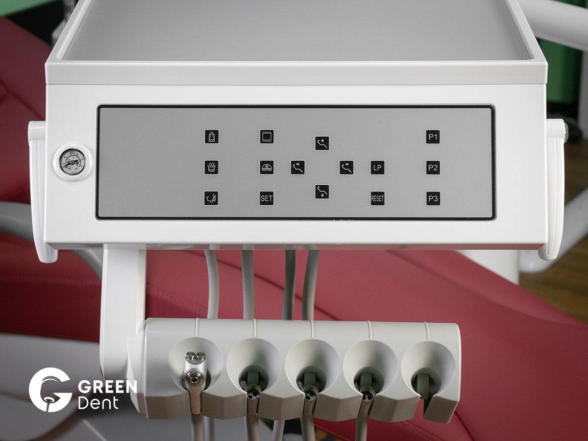 Блок врача на 5 инструментов с новой сенсорной панелью управления креслом и гидроблоком, манометром давления.