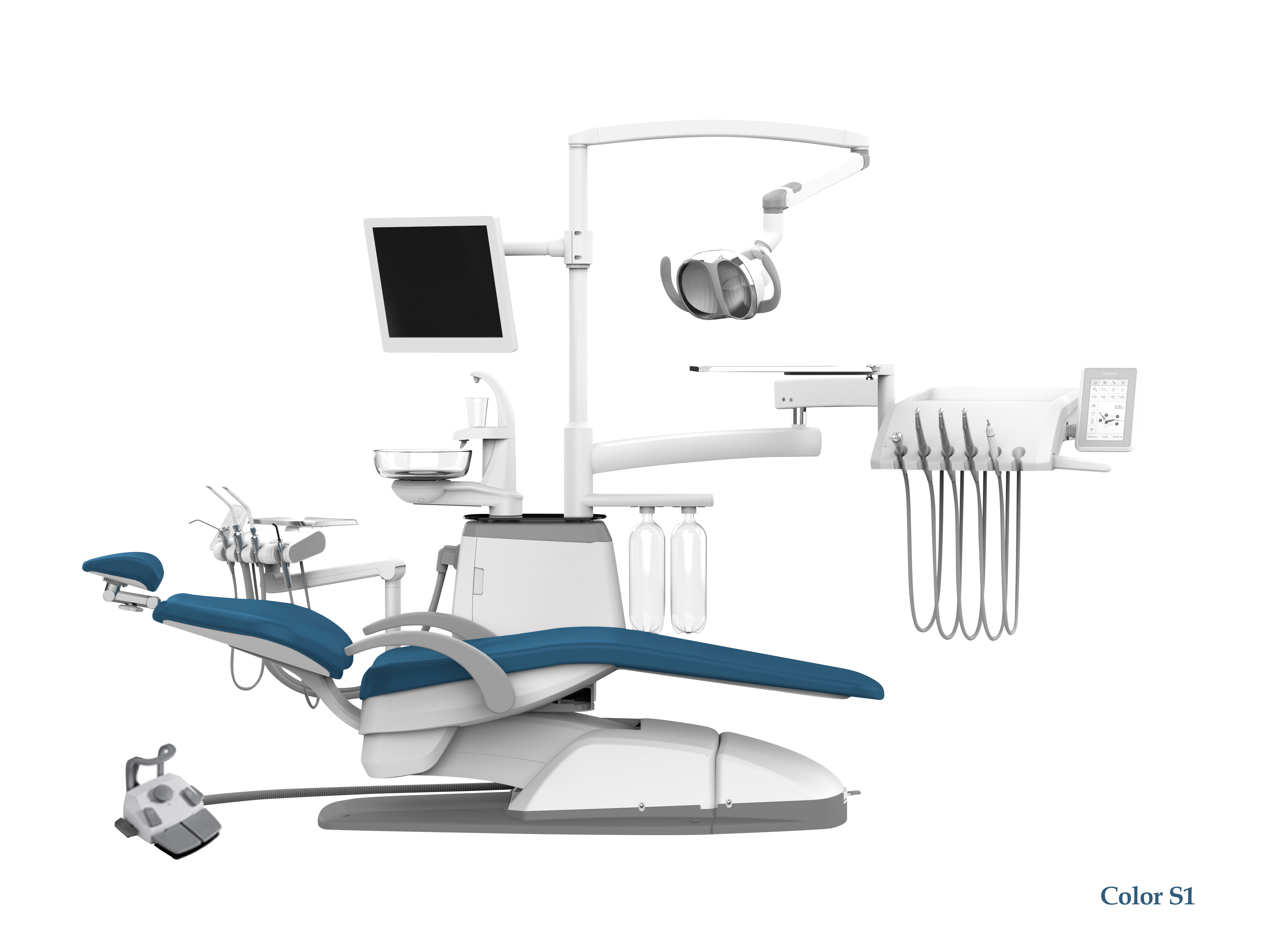 - Управление светильником осуществляется с помощью сенсорной панели на блоке врача, блоке ассистента и педали ножного управления
