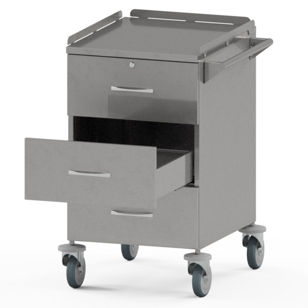 Тумба медицинская для анестезиолога предназначена для размещения инструмента, материалов и медикаментов при оснащении операционных в медицинских учреждениях.